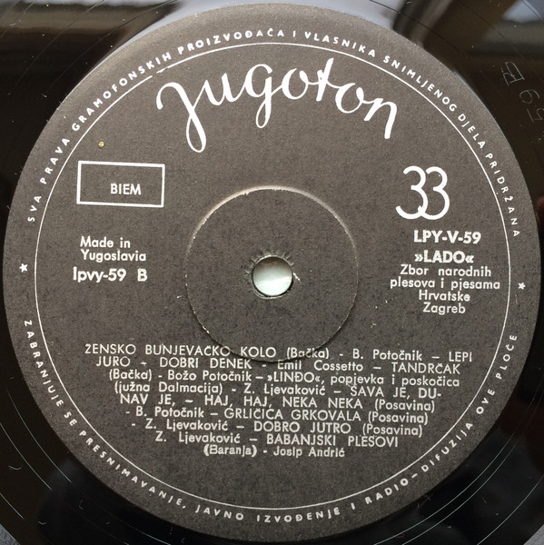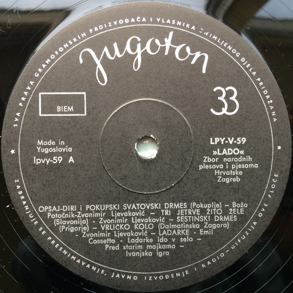 Lado (2) – Zbor Narodnih Plesova I Pjesama Hrvatske Zagreb (The Folk Dance And Folk Song Ensemble Of Croatia Zagreb Yugoslavia) (LP, Album, Mono)