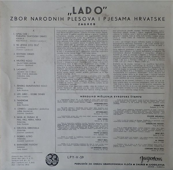 Lado (2) – Zbor Narodnih Plesova I Pjesama Hrvatske Zagreb (The Folk Dance And Folk Song Ensemble Of Croatia Zagreb Yugoslavia) (LP, Album)