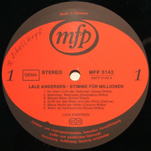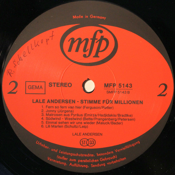 Lale Andersen – Stimme Für Millionen (LP, Comp)