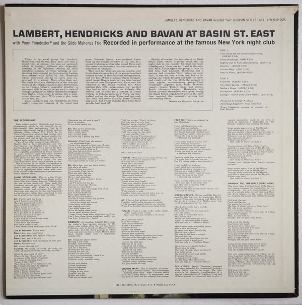 Lambert, Hendricks & Bavan – Recorded Live At Basin Street East (LP)