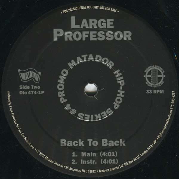 Large Professor – Blaze Rhymez / Back To Back (12″, Single, Promo)
