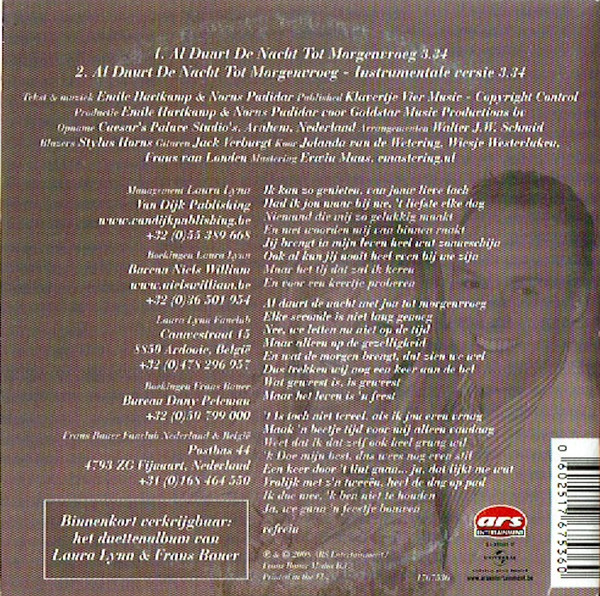 Laura Lynn & Frans Bauer – Al Duurt De Nacht Tot Morgenvroeg (CD, Single)