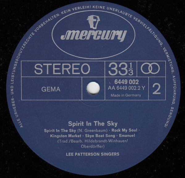 Lee Patterson Singers – Spirit In The Sky (LP, Album)