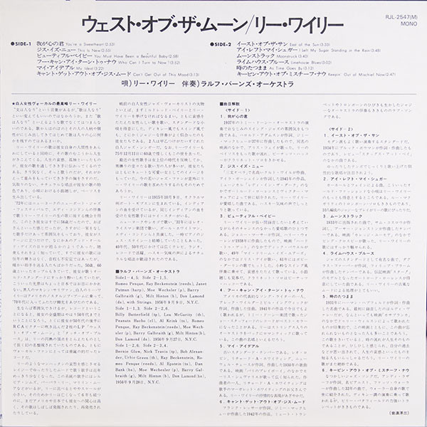 Lee Wiley – West Of The Moon (LP, Album, RE)