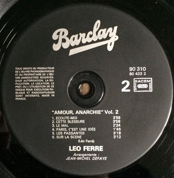 Léo Ferré – Léo Ferré / La Folie – 10 – Amour, Anarchie – Ferré 70 Vol.2 (LP, Album, RE)