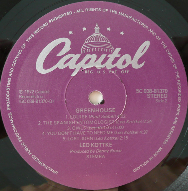 Leo Kottke – Greenhouse (LP, Album, RE)