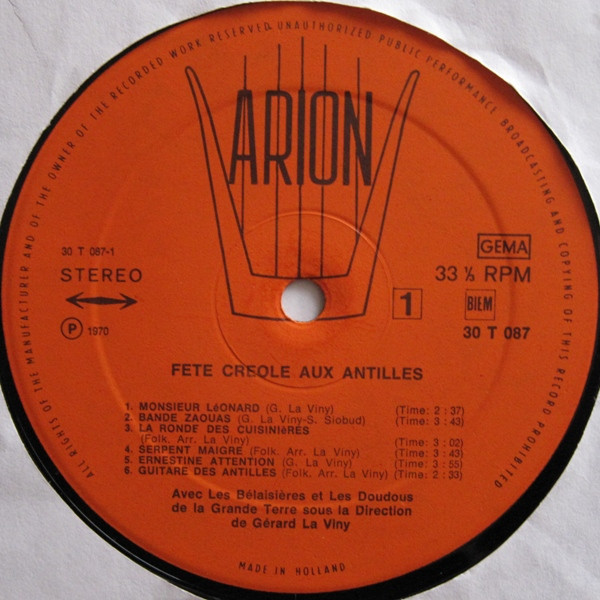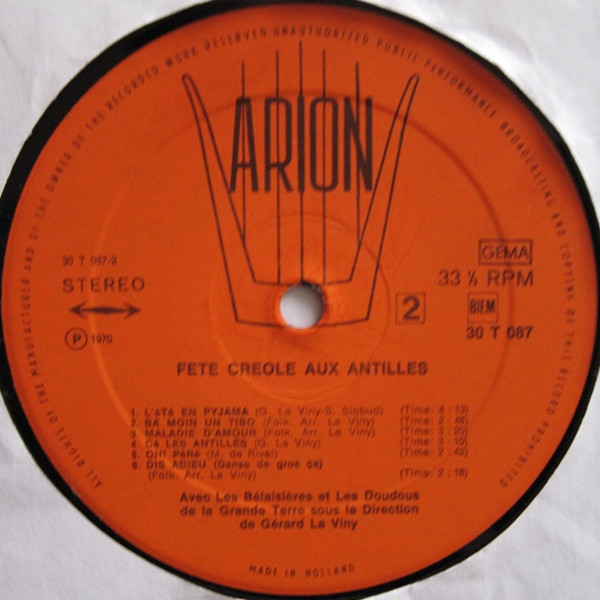 Les Bélaisières et Les Doudous Sous La Direction De Gérard La Viny – Fete Creole Aux Antilles (LP, Album)