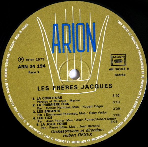 Les Frères Jacques – La Confiture (LP, Album, Gat)