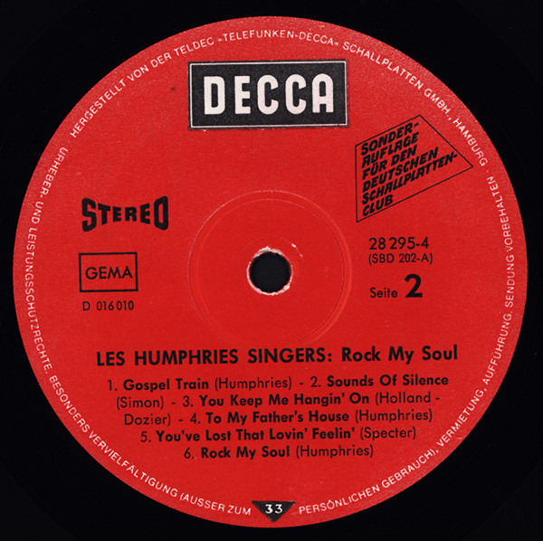 Les Humphries Singers – Rock My Soul (LP, Album, Club)