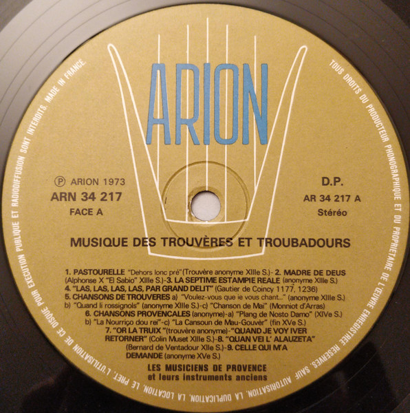 Les Musiciens De Provence – Musique Des Trouvères Et Troubadours (Instruments Anciens) (LP, B)