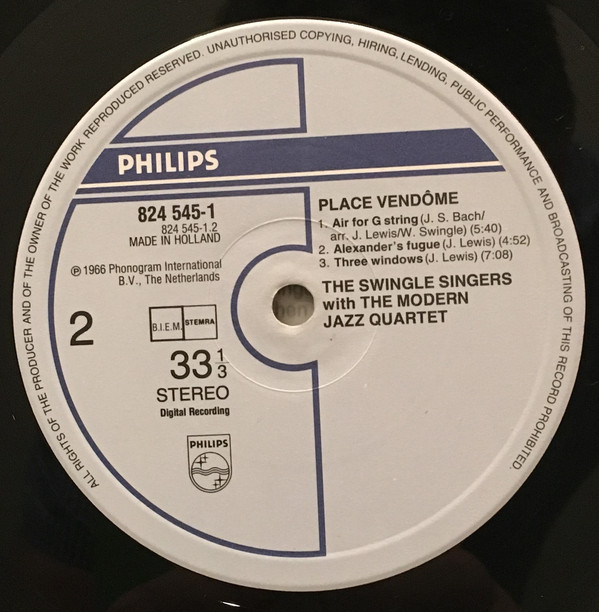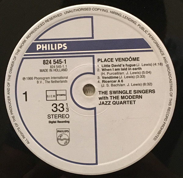 Les Swingle Singers With The Modern Jazz Quartet – Place Vendôme (LP, Album, RE)