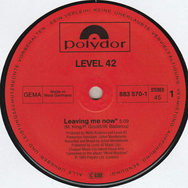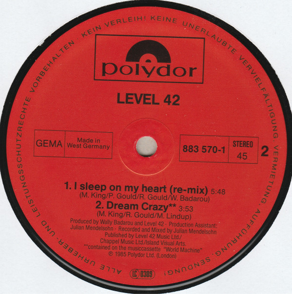 Level 42 – Leaving Me Now / I Sleep On My Heart (Re-mix) / Dream Crazy (12″, Maxi)