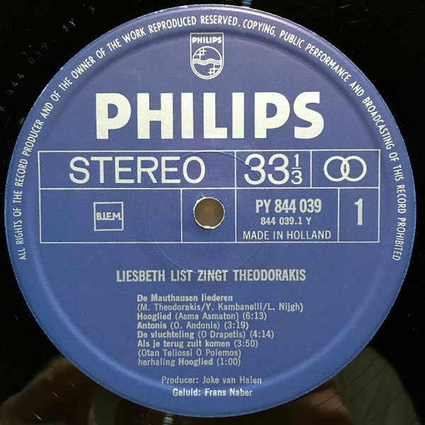 Liesbeth List Zingt Mikis Theodorakis – Liesbeth List Zingt Theodorakis (LP, Album)