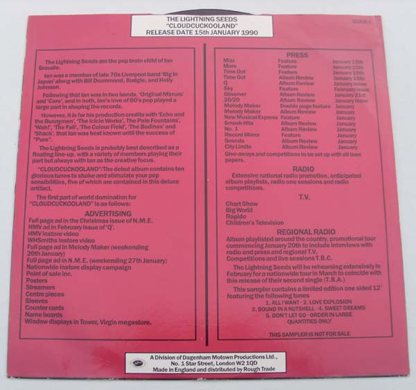 Lightning Seeds – 5 Tunes From Cloudcuckooland (12″, S/Sided, Promo, Smplr)