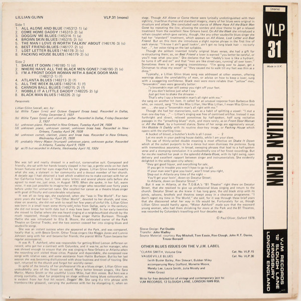 Lillian Glinn – Recorded 1927-29 In Atlanta, Dallas And New Orleans (LP, Comp, Mono)