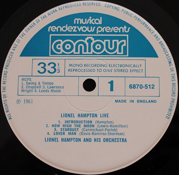Lionel Hampton And His Orchestra – Lionel Hampton Live Lionel Hampton Live (LP, Mono)