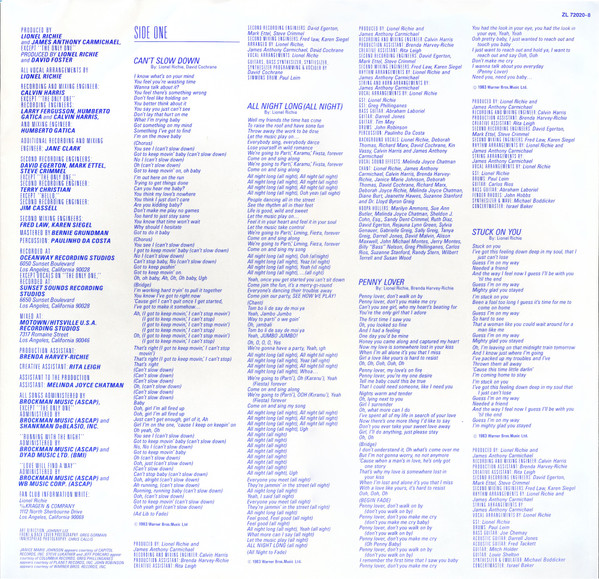 Lionel Richie – Can’t Slow Down (LP, Album, RE, Gat)