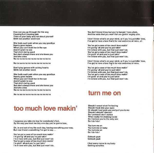 9. Too Much Love Makin’ 4:35