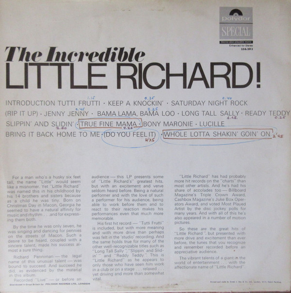 Little Richard – The Incredible Little Richard! Sings His Greatest Hits – Recorded Live (LP, Album, P/Mixed)