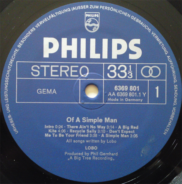 Lobo (3) – Of A Simple Man (LP, Album, RE)