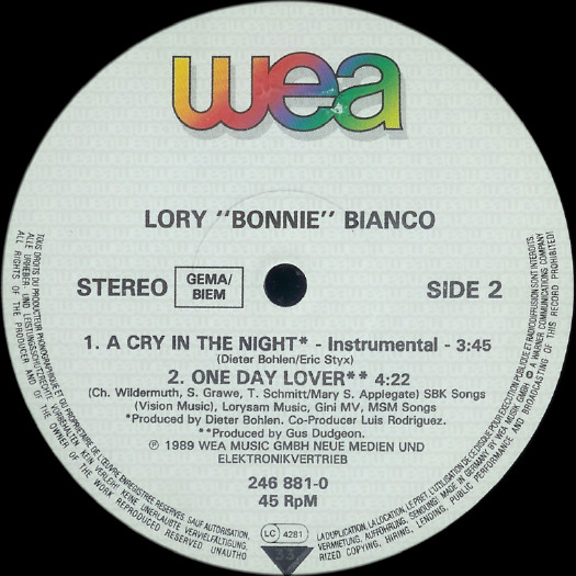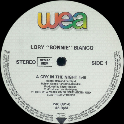 Lory “Bonnie” Bianco* – A Cry In The Night (12″)