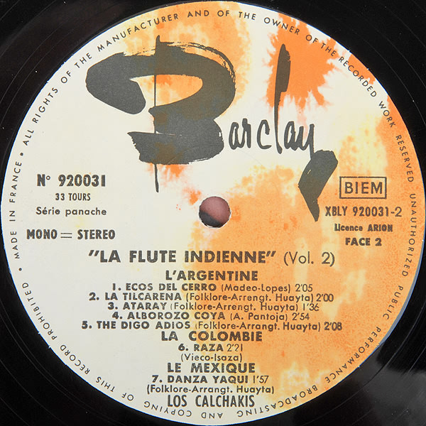 Los Calchakis Avec Guillermo De La Roca – La Flute Indienne Volume 2 (LP, Album, RE)