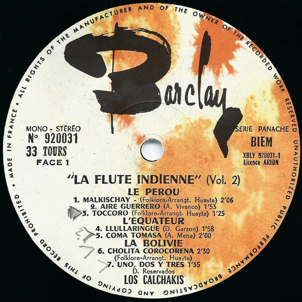 Los Calchakis Avec Guillermo De La Roca – La Flute Indienne Volume 2 (LP, Album)