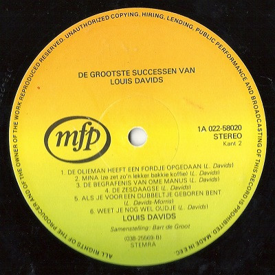 Louis Davids – De Grootste Successen Van Louis Davids (LP, Comp)