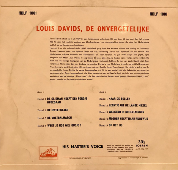 Louis Davids – Louis Davids (10″, Comp, Mono, RP)