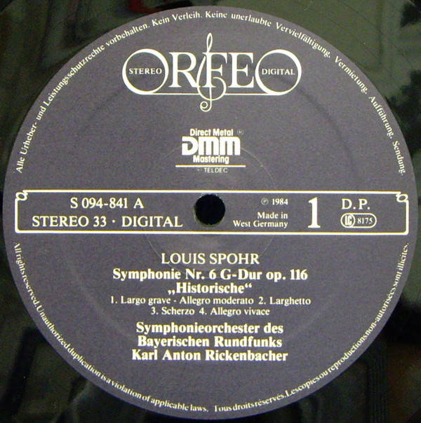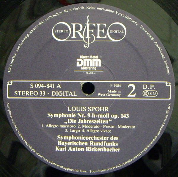Louis Spohr – Symphonieorchester Des Bayerischen Rundfunks*, Rickenbacher* – Symphonien 6 & 9 (Historische ∙ Die Jahreszeiten) (LP)