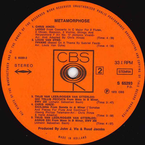 Louis van Dijk, Thijs van Leer, Rogier van Otterloo, Chris Hinze – Metamorphose (LP, Album, Comp)