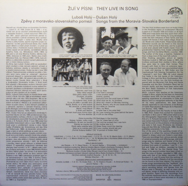 Luboš Holý, Dušan Holý – Žijí V Písni – Zpěvy Z Moravsko-Slovenského Pomezí (LP, Album)