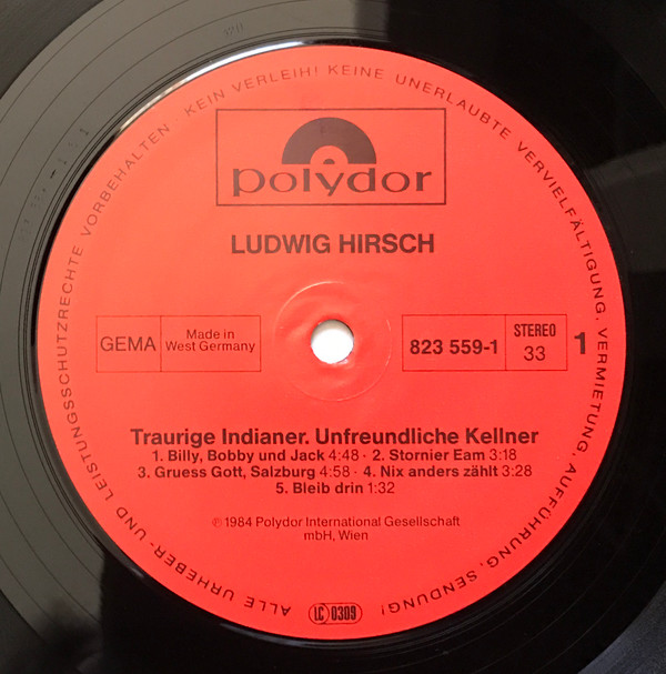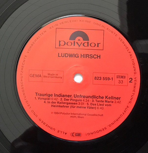 Ludwig Hirsch – 6 (Traurige Indianer – Unfreundliche Kellner) (LP, Album)