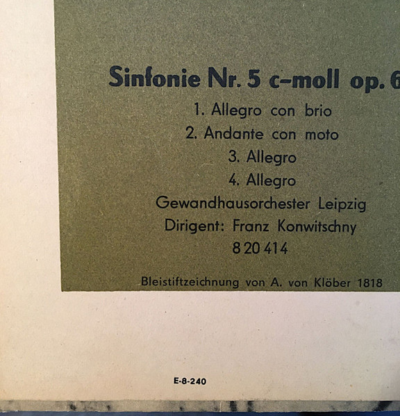 Ludwig van Beethoven, Gewandhausorchester Leipzig, Franz Konwitschny – Sinfonie Nr. 5 C-moll Op. 67 (LP, Mono, RE)