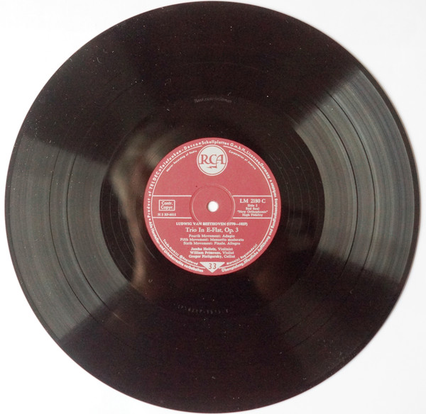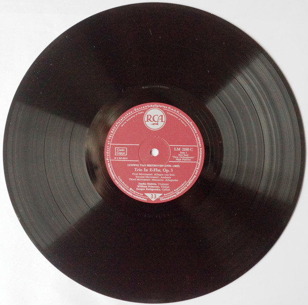 Ludwig van Beethoven – Jascha Heifetz, William Primrose, Gregor Piatigorsky – Trio In E-Flat, Op. 3 (LP, Mono)