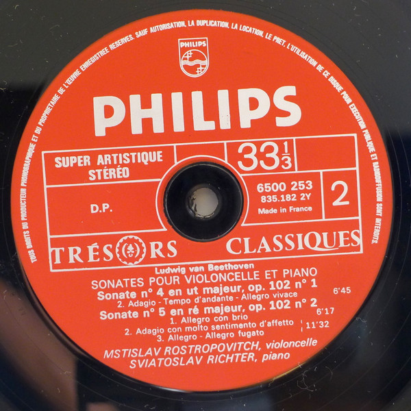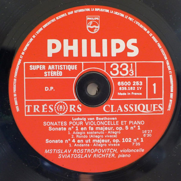 Ludwig van Beethoven / Mstislav Rostropovich, Sviatoslav Richter – Sonates Pour Violoncelle Et Piano N°1, 4, 5 (LP, RE, Gat)
