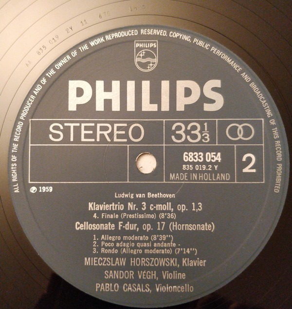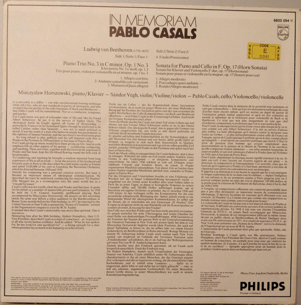 Ludwig van Beethoven, Pablo Casals – In Memoriam – Piano Trio, Op.1 No. 3, Cello Sonata Op.17 (LP, RE)