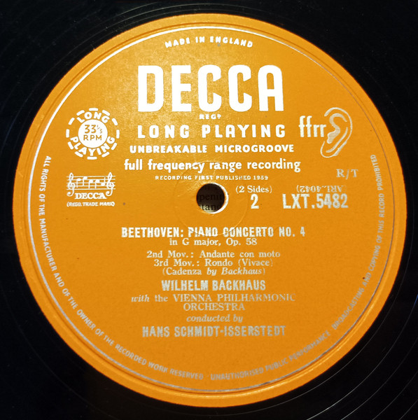 Ludwig van Beethoven, Wilhelm Backhaus, Wiener Philharmoniker, Hans Schmidt-Isserstedt – Piano Concerto No. 4 (LP, Mono)