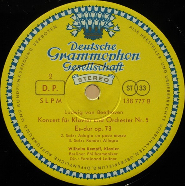 Ludwig van Beethoven / Wilhelm Kempff ‧ Berliner Philharmoniker ‧ Dirigent: Ferdinand Leitner – Klavierkonzert Nr. 5 Es-Dur Op. 73 (LP, RP)