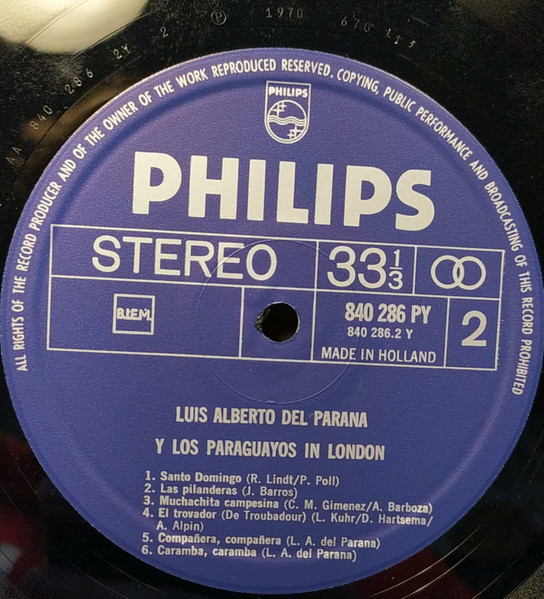 Luis Alberto del Parana y Los Paraguayos – In London (LP, Album, Mono)