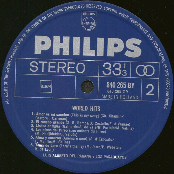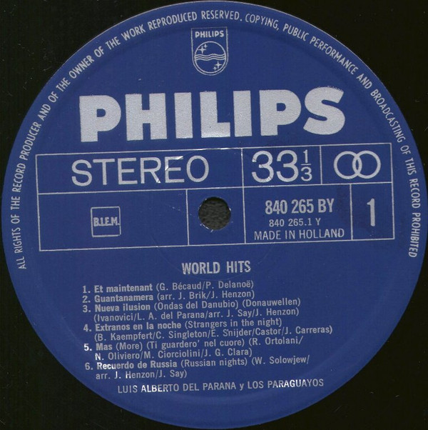 Luis Alberto del Parana y Los Paraguayos – World Hits (LP, Album)