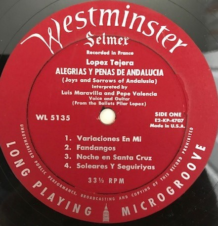 Luis Lopez Tejera – Allegrias Y Penas De Analucia (Joys And Sorrows Of Andalusia) (LP, Mono)