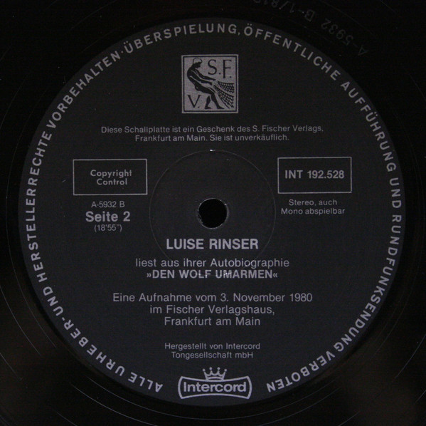 Luise Rinser – LUISE RINSER Liest Aus Ihrer Autobiographie “DEN WOLF UMARMEN” (LP, Album, S/Edition, Gat)