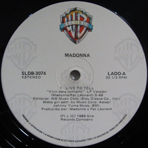 Madonna – Live To Tell (12″, Maxi)
