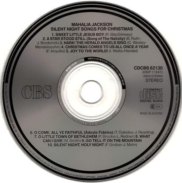 Mahalia Jackson – Silent Night – Songs For Christmas (CD, Album, RE)