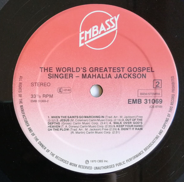 Mahalia Jackson – The World’s Greatest Gospel Singer (LP, Album, RE)