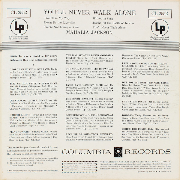 Mahalia Jackson – You’ll Never Walk Alone (10″, Album, Mono)