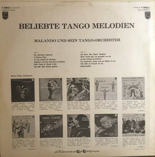Malando And His Tango Orchestra – Beliebte Tango-Melodien (LP, Album, Mono)