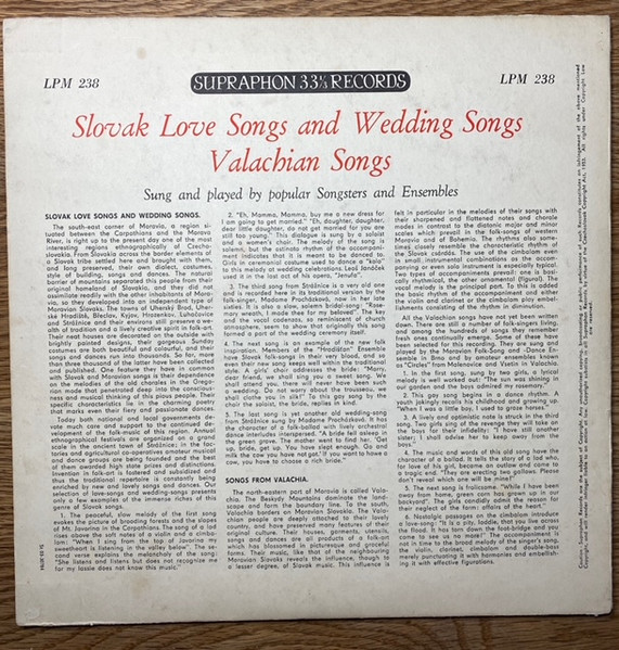 Malenovice Ensemble, Popular Ensembles – Slovak Love Songs And Wedding Songs / Valachian Songs (10″)