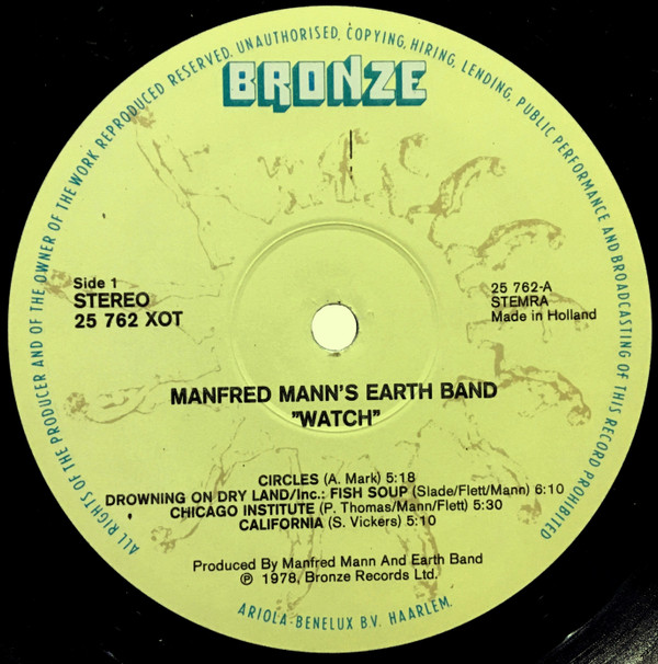 Manfred Mann’s Earth Band – Watch (LP, Album, Tex)
